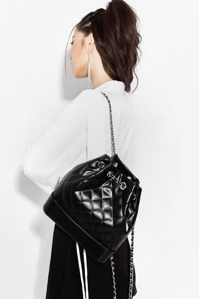 - Chất liệu: Da PU cao cấp, bề mặt thêu hình thoi nổi bật, đáy balo cứng cáp.