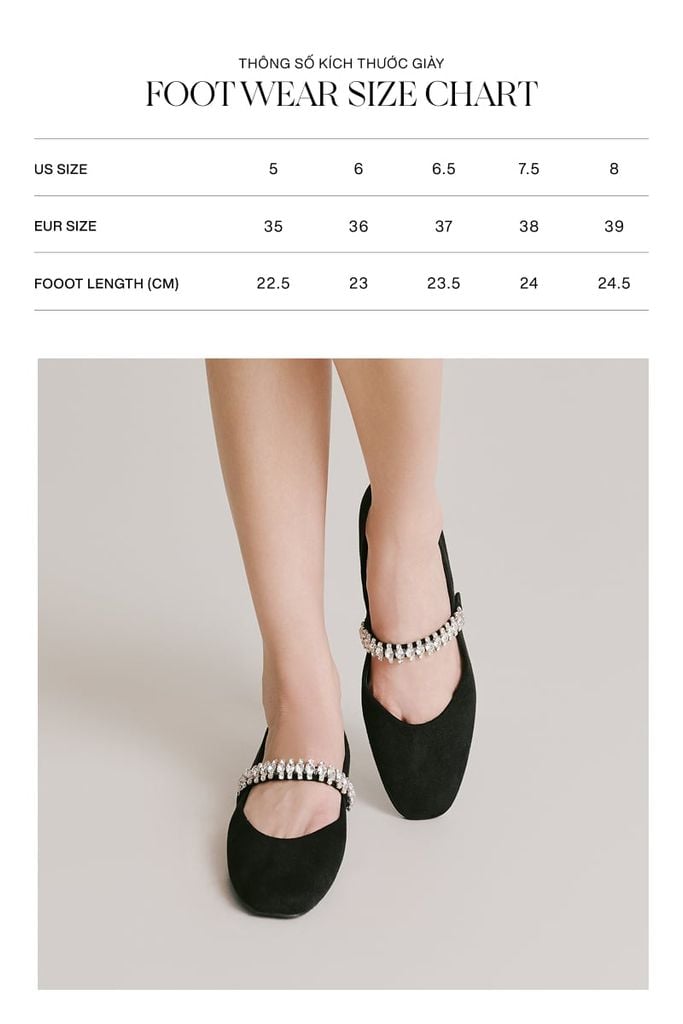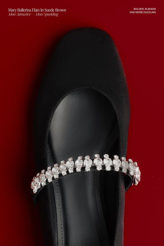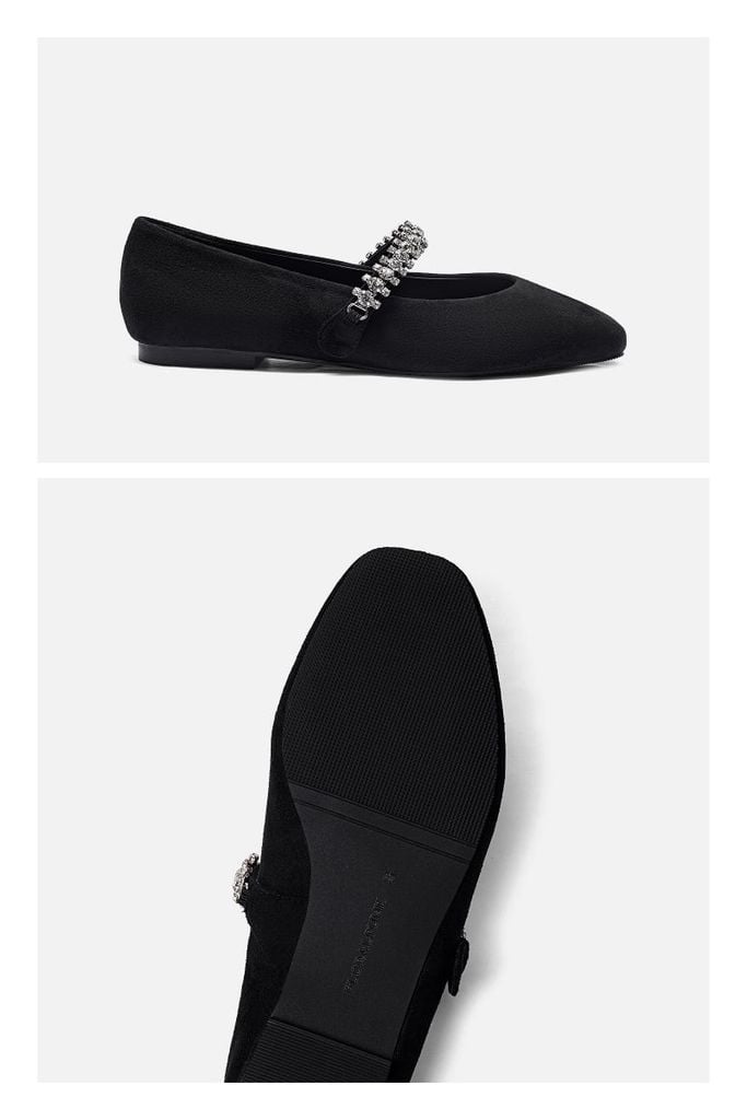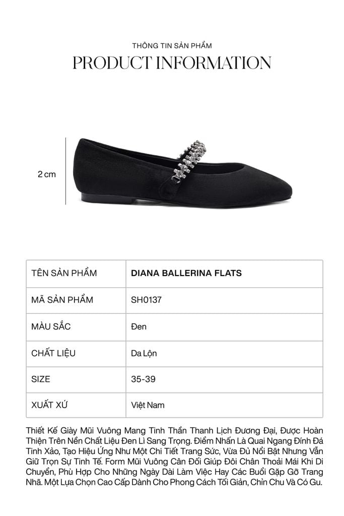 Diana Ballerina Flats – Black mang tinh thần thanh lịch đương đại, là sự lựa chọn hoàn mỹ cho những ai yêu thích phong cách tối giản nhưng vẫn muốn tạo điểm nhấn khác biệt. Được hoàn thiện trên nền chất liệu da lộn đen lì sang trọng, đôi giày toát lên vẻ tinh tế và chiều sâu trong từng đường nét. Điểm nhấn đắt giá nhất chính là phần quai ngang đính đá tinh xảo, tỏa sáng lấp lánh như một món trang sức quý giá dành riêng cho đôi chân bạn. Với thiết kế mũi vuông cân đối vừa hiện đại vừa cổ điển, Diana Ballerina không chỉ mang lại sự thoải mái tuyệt đối khi di chuyển mà còn giúp nâng tầm mọi bộ trang phục, từ đồ công sở chỉn chu đến những bộ váy dự tiệc trang nhã.