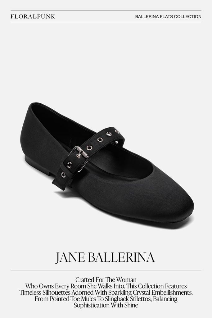 Giày Búp Bê Floralpunk Jane Ballerina Flats – Black