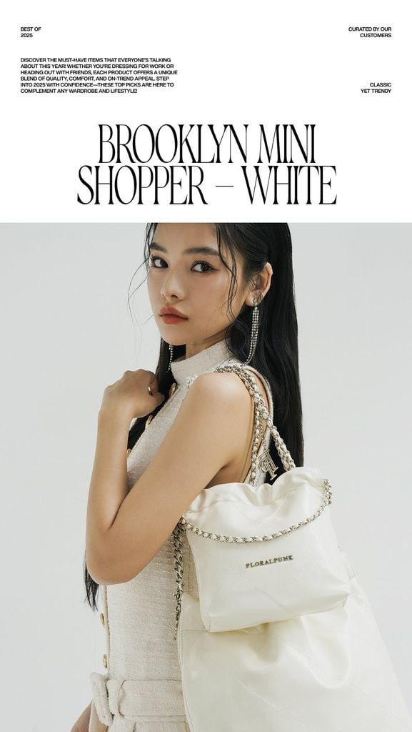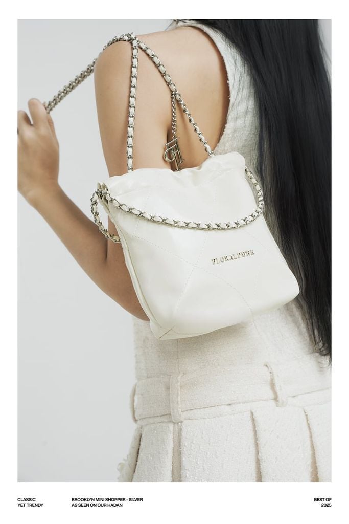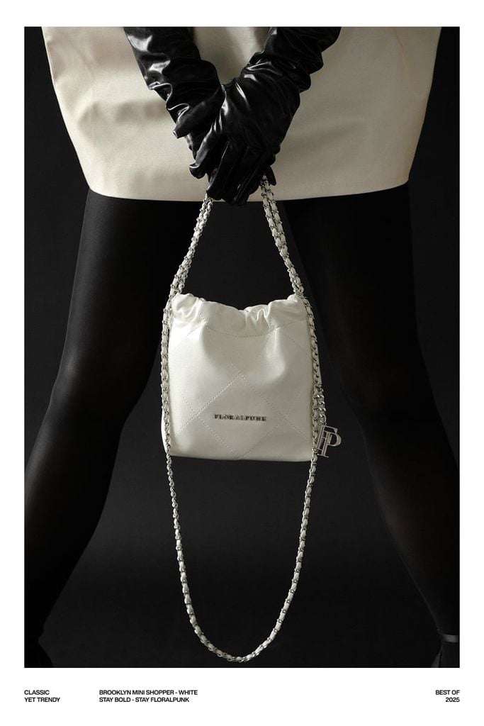 Brooklyn Mini Shopper là mẫu túi tote dây rút với thiết kế trẻ trung, hiện đại từ Floralpunk. Phom túi mini nhỏ gọn, chất liệu da PU mềm mịn kết hợp quai đeo phối xích và da tạo điểm nhấn thời trang. Đi kèm FP keychain kim loại – phụ kiện đặc trưng của thương hiệu – tạo nên tổng thể năng động, tiện dụng mà vẫn cuốn hút.