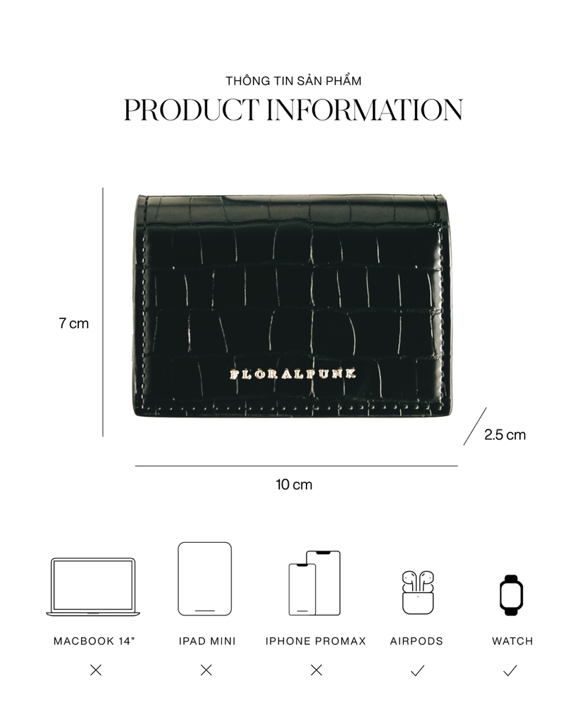 - Sức chứa: Đựng được thẻ ngân hàng, tiền giấy gấp nhỏ, son mini hoặc tai nghe không dây.