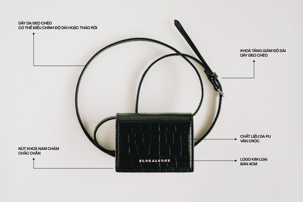 + Thiết kế ví đeo chéo nhỏ gọn – tiện lợi cho các buổi dạo phố hoặc sự kiện.