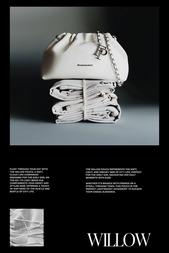 Willow Pouch là mẫu túi đeo vai đầy uyển chuyển và nữ tính, được làm từ chất liệu da PU trơn màu kem mềm mại, kết hợp cấu trúc nhún miệng túi thời thượng. Thiết kế tạo hiệu ứng bồng nhẹ và sang trọng, giúp bạn dễ dàng nâng tầm trang phục từ thường ngày đến dự tiệc.