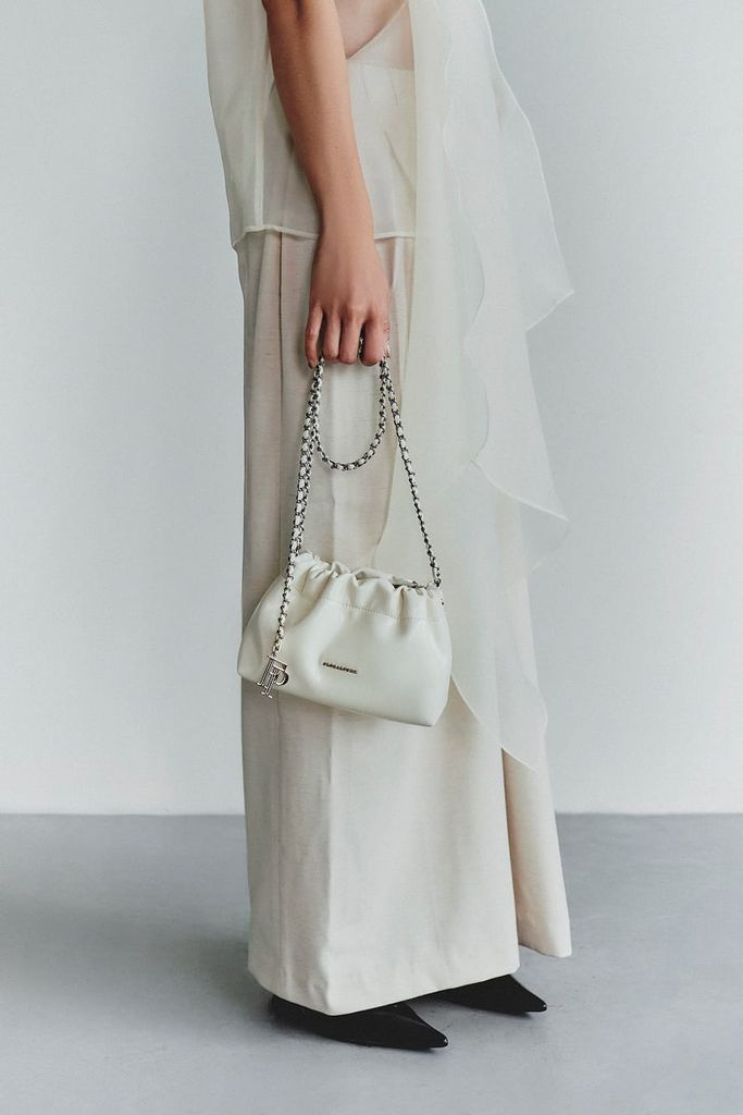 Chi tiết dây đeo dạng xích phối da cùng tone màu, có thể điều chỉnh độ dài lên đến 120 cm, phù hợp để đeo vai hoặc đeo chéo linh hoạt. Từng đường nhún nhẹ nhàng cùng dáng túi mềm mại giúp bạn dễ dàng kết hợp với váy dạ hội, áo dài hoặc đầm công chúa cho những dịp đặc biệt như lễ, tiệc, chụp hình kỷ niệm hoặc hẹn hò cuối tuần.