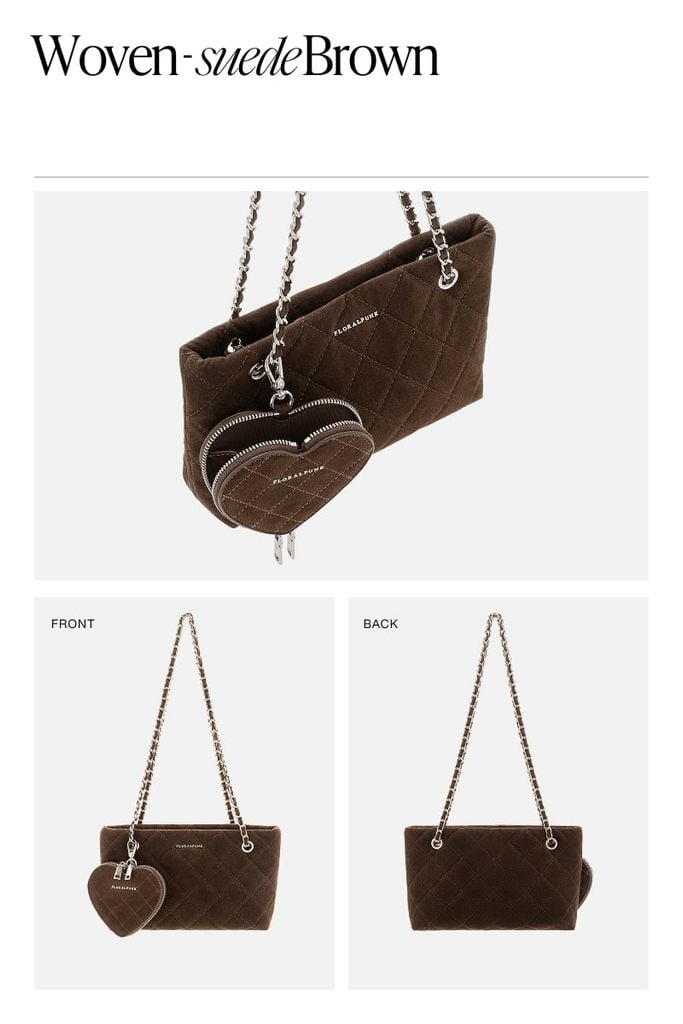 Yvonne Bag – Suede Brown là sự kết hợp hoàn hảo giữa nét cổ điển và tinh thần hiện đại, nổi bật với họa tiết chần trám tinh tế trên nền chất liệu da lộn mềm mịn. Với gam màu nâu trầm ấm áp, chiếc túi toát lên vẻ sang trọng, chiều sâu và cực kỳ dễ phối hợp với nhiều phong cách từ công sở thanh lịch đến dạo phố sành điệu. Điểm nhấn độc đáo nhất của sản phẩm là ví mini hình trái tim đồng bộ đi kèm, mang lại nét cá tính riêng biệt mà vẫn đảm bảo tính thực tế cao. Đây là phụ kiện lý tưởng cho những ai tìm kiếm một chiếc túi vừa đủ nổi bật để làm điểm nhấn cho trang phục, vừa đủ tinh giản để sử dụng bền vững theo thời gian.