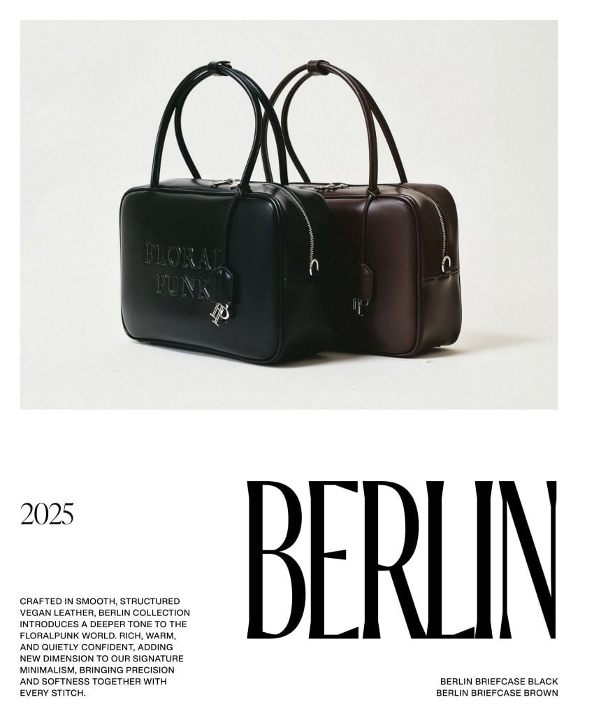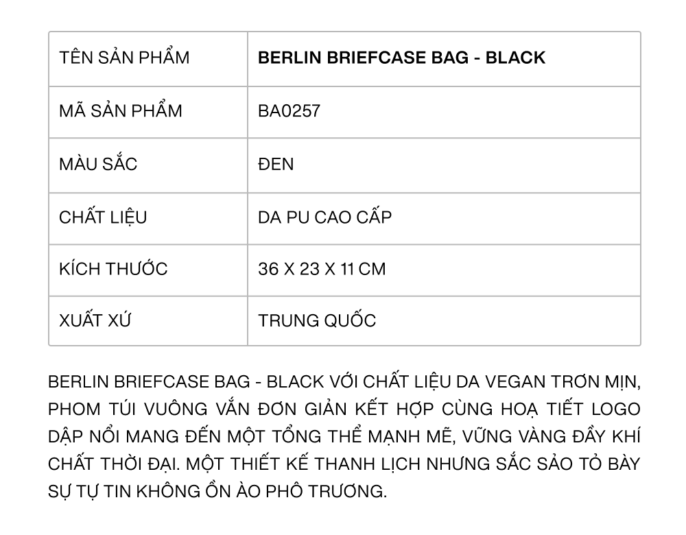Túi Berlin Briefcase Bag màu đen từ Floralpunk là mẫu túi mang kiểu dáng hình hộp vuông hiện đại, thiết kế tối giản kết hợp cùng họa tiết logo dập nổi cá tính. Chất liệu da vegan mịn màng, form túi chắc chắn và tinh tế, tạo nên diện mạo mạnh mẽ mà vẫn thanh lịch, phù hợp với mọi phong cách – từ công sở chuyên nghiệp đến street style thời thượng.