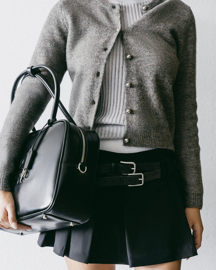 + Phom túi hình hộp vuông mạnh mẽ – biểu tượng cho sự vững vàng và chững chạc.